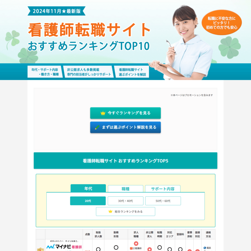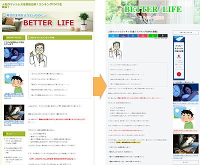 テキスト原稿と既定のイラスト画像を元に、ヘッダー画像、ランキング表、吹き出しなどが含まれる全てのページコンテンツを、スマートフォンやタブレットにも対応したレスポンシブデザインで制作。
