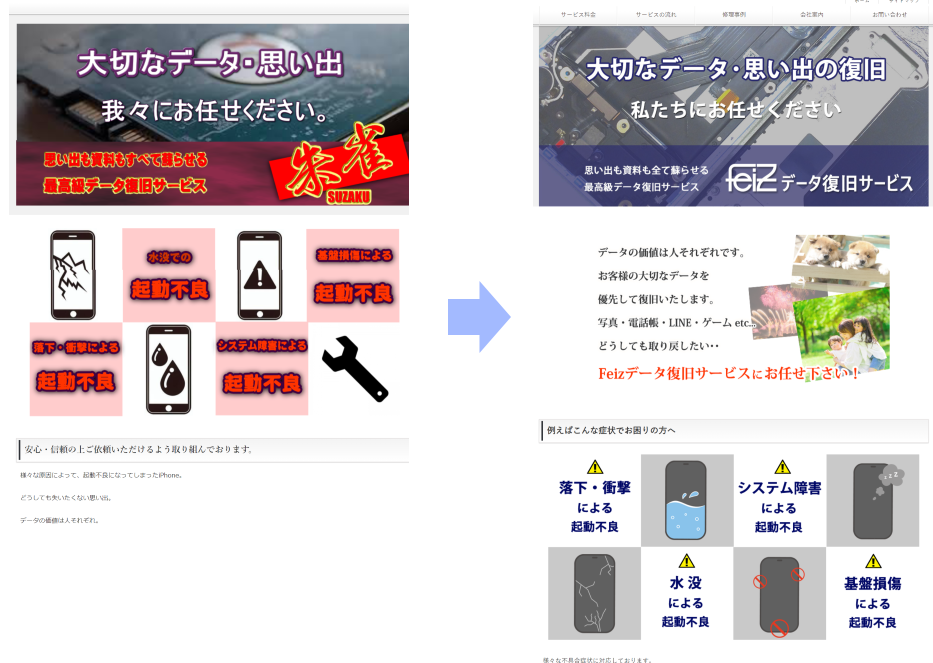 合わせて6サイト分の変更を短期間で正確に修正変更しました。
